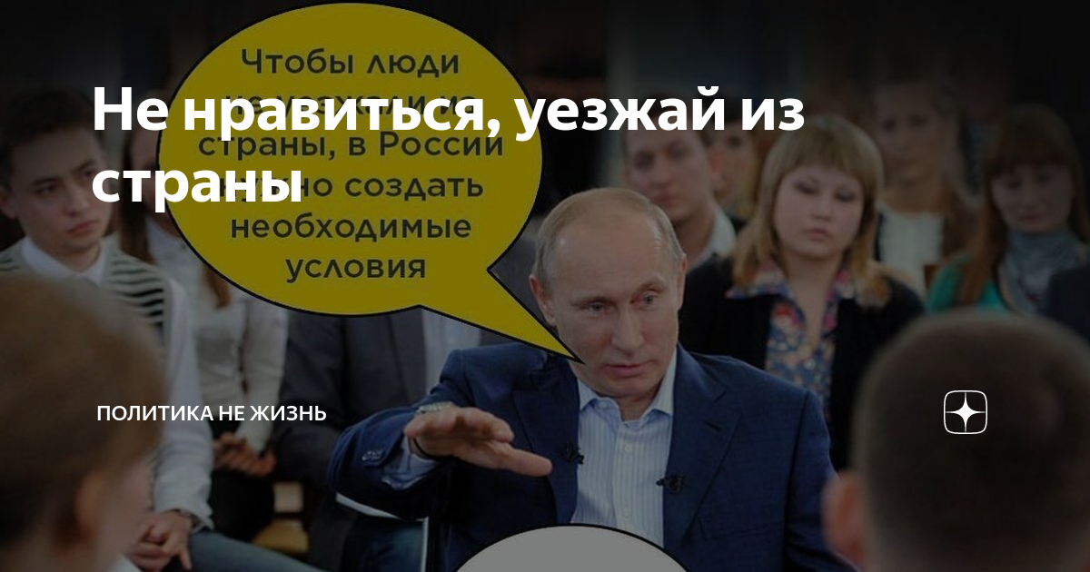 Наверное, многие слышали подобное выражение в свой адрес. Но одно дело, когда это пишут и говорят тролли(они просто выражают мысль работодателя) или артисты разных мастей(они любой власти прислуживать). Но, вот когда об этом начинают говорить обычные граждане, в этом случае возникает непонимание. То есть, если ты имеешь свое собственное мнение(даже не важно, правильное, неправильное, главное чтобы оно с мнением Кремля не совпадало) то страну должен покинуть. Ибо нечего тут умным себя выставлять. Господа оглянитесь вокруг. Будь у людей возможность, более 40% уехало бы прямо сейчас, а из молодежи процентов 70. И с кем вы останетесь? Но, многим уехать не позволяет финансовая составляющая, а кому-то страх что на новом месте не все получиться. И кто же интересно до этого довел? Молодые ученые и специалисты и так массово покидают страну. Потому что не видят здесь перспектив. А самое интересное, что покидают страну и дети чиновников и депутатов, потому что не хотят жить по папиным и мамины