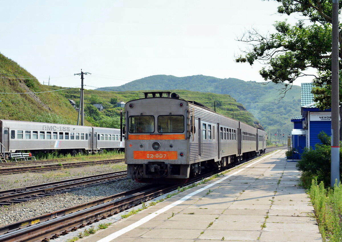 Сравните с тем, на чем приходилось ездить раньше. Японский поезд Д 2, производство Фудзи Хэви Индастриз ЛТД. Но это уже не осколок оккупации, СССР продолжал закупать дизель-поезда в Японии, вместо того, чтобы перешить железную дорогу. Этот поезд Д 2-007 куплен в 1986 году.