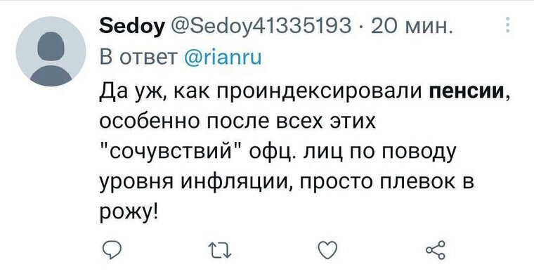 Плановая индексация пенсий российским пенсионерам на размер инфляции за прошлый год произошла с 1 января 2022 года и вызвала неоднозначную реакцию среди пожилых граждан России. Скорее реакция даже однозначная, пенсионеры недовольны размером прибавки к пенсии на фоне сильного роста цен на продукты питания в магазинах. Президент России Владимир Путин обещал с экранов телевизоров что индексация пенсий и других социальных выплат будет гораздо выше, однако на сегодняшний день этого не произошло.