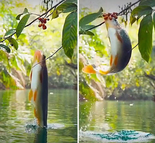 Видел как хариус так прыгал и смородину на берегу реки срывал,или когда мотыль летал над водой,также выпрыгивал и его хватал.