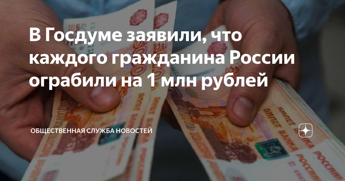 В Госдуме заявили, что каждого гражданина России ограбили на 1 млн рублей