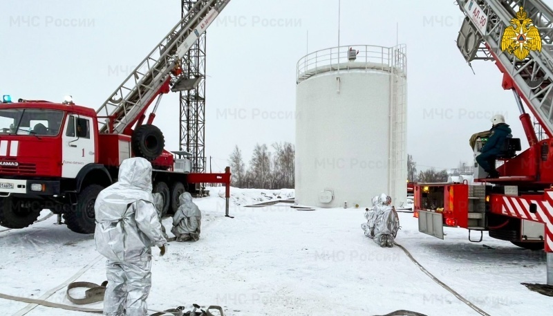 Огнеборцы отработали приёмы применения современной техники и оборудования. Отработали действия по прокладке магистральных линий для обеспечения бесперебойной подачи огнетушащих веществ и подачу стволов для охлаждения горящего резервуара и предотвращения вскипания и последующего выброса топлива.