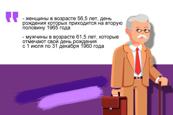 - мужчины в возрасте 61,5 лет, которые отмечают свой день рождения с 1 июля по 31 декабря 1960 года.