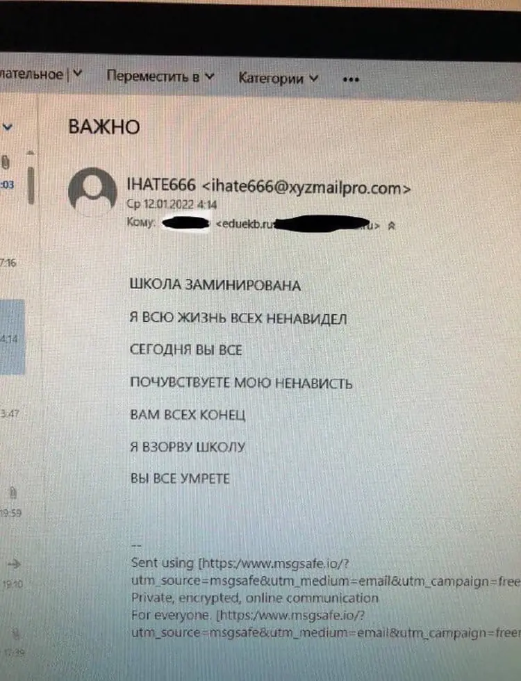-Уважаемые родители сейчас пришло сообщение, что поступил сигнал о минировании школы. Поэтому первая смена отменяется, вторая смена по обстоятельствам, - такое сообщение получили в чате родители школы №1.