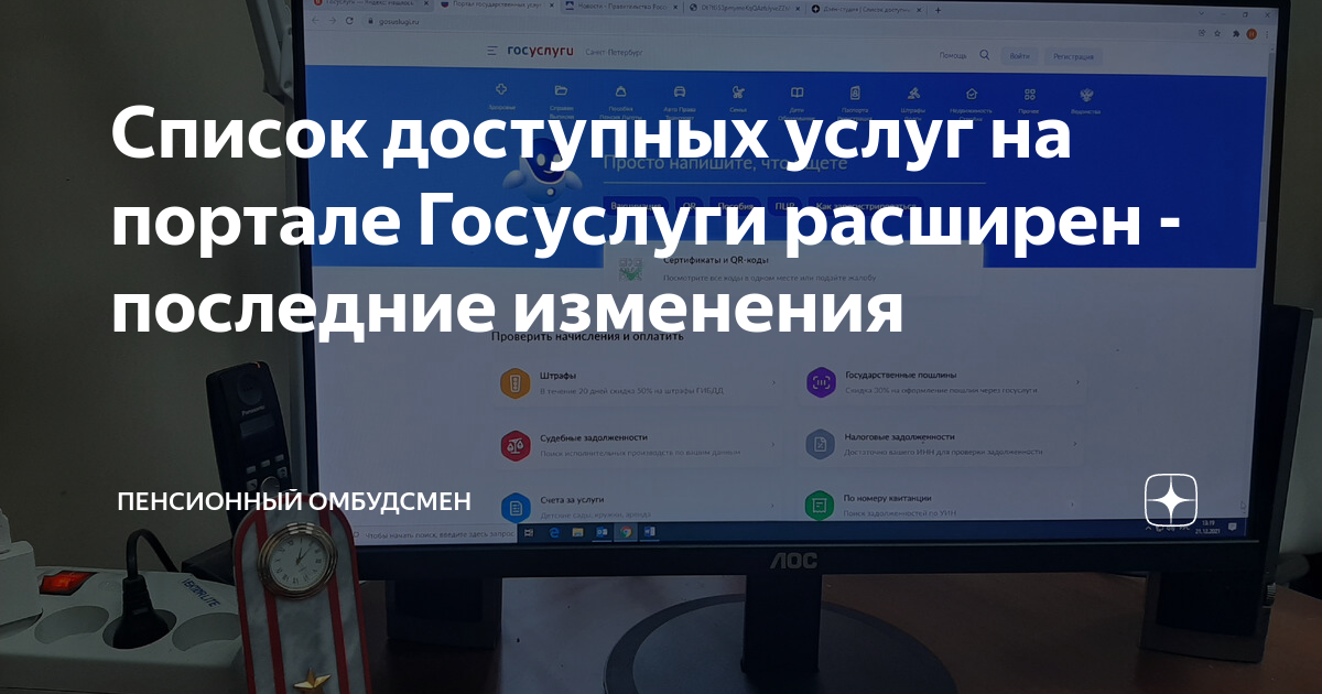 Список доступных услуг на портале Госуслуги расширен - последние изменения
