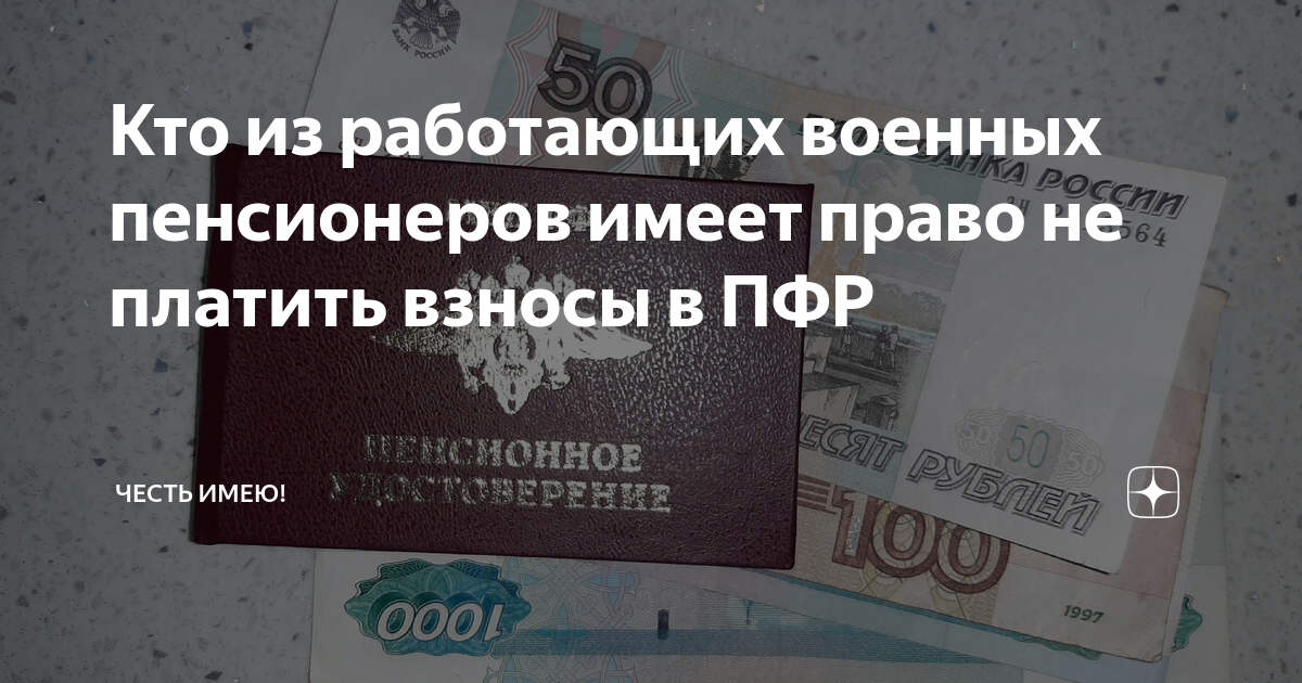 Источник: https://zen.yandex.ru/media/id/618531ed79319575a5fd5e28/kto-iz-rabotaiuscih-voennyh-pensionerov-imeet-pravo-ne-platit-vznosy-v-pfr-61de62750214ae071f10b0bf