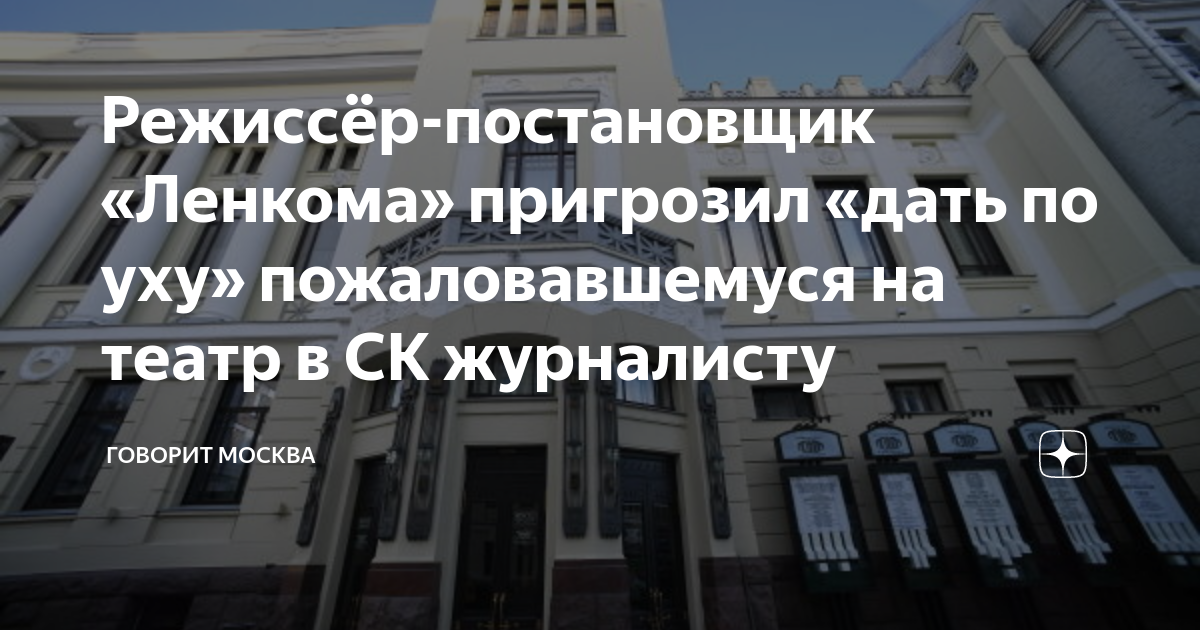 Источник: https://zen.yandex.ru/media/govoritmsk/rejisserpostanovscik-lenkoma-prigrozil-dat-po-uhu-pojalovavshemusia-na-teatr-v-sk-jurnalistu-61dea6146d9a2c6755b29969