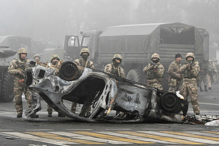 В Казахстане работают миротворцы ОДКБ. По словам Владимира Владимировича Путина, войска ОДКБ пробудут на территории Казахстана столько, сколько нужно, чтобы обеспечить защиту населения. 10 января 2022 года стало известно, что президент страны представит в парламенте предложения по новому составу правительства республики.