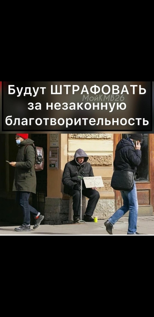 Так что же получается?Бабушка просящая милостыню,на еду или же на лекарства,инвалид колясочник вынужденный в мороз или же в дождь стоять прося копейку на пропитание, оба преступники? Обоих отправят на 15 суток за то,что Пудинг со своей фабрикой всё обложили высочайшим налогом и не оставляют средств для существования простого,или же болеющего народа,за то что им приходятся хоть как-то выживать! Чиновникам свыше мало налогов,скоро нам нужно будет платить за воздух?