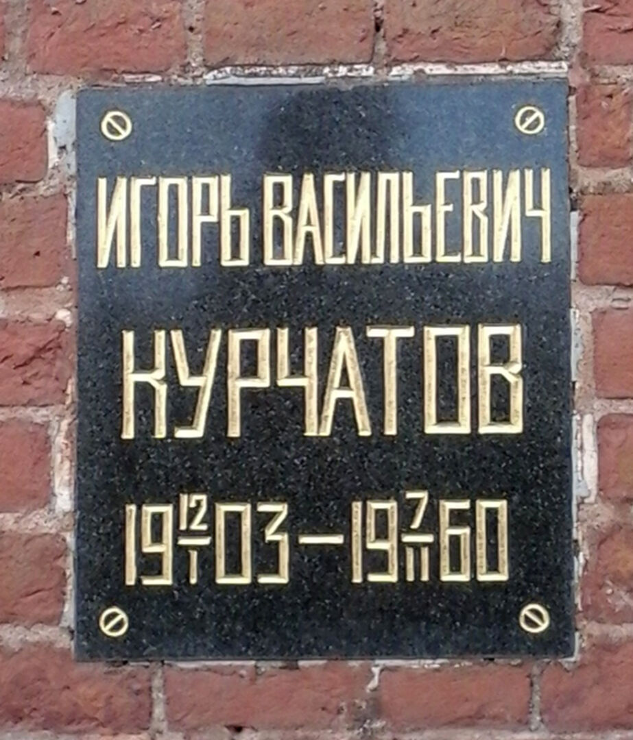 «Отец» советской атомной бомбы. Трижды Герой Социалистического Труда. Академик АН СССР, доктор физико-математических наук, профессор. Основатель и первый директор Института атомной энергии ныне носящего его имя. Главный научный руководитель советского «атомного проекта». Под его непосредственным руководством были разработаны, созданы и испытаны первая советская атомная бомба (1949), водородная бомба (1953) и термоядерная «Царь бомба». Курчатов научный руководитель один из основоположников использования ядерной энергии в мирных целях. Под его руководством в 1954 году была запущена в эксплуатацию первая в мире АЭС в Обнинске. Лауреат Ленинской премии и четырёх Сталинских премий. Академик Курчатов Скоропостижно скончался 7 февраля 1960 года. Урна с прахом великого ученого захоронена в Кремлевской стене.