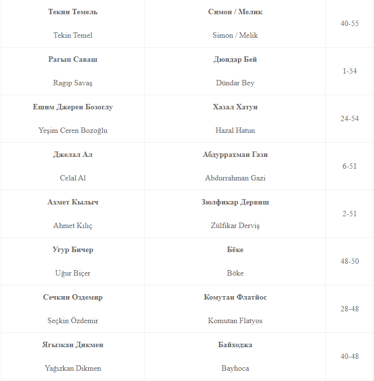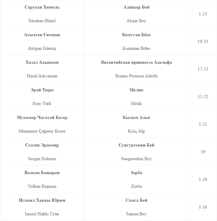 Актеры и роли сериала «Основание Осман | Kuruluş Osman» (2019-2022)