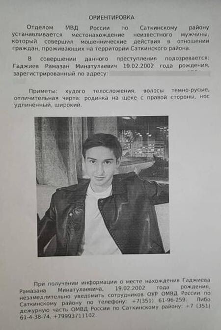 В Самарской области полицейские разыскивают 19-летнего жулика, который будучи сыном начальника отдела экономической безопасности МВД на транспорте, полковника полиции Минатулы Гаджиева, организовал финансовую пирамиду и обманул несколько тысяч человек. Очевидно, ушлый Рамазан, с детства слышавший рассказы о различных схемах мошенничества и той лёгкости, с какой люди порой отдают свои деньги незнакомцам, решил не идти по стопам отца и предпочел более лёгкий способ обогащения.