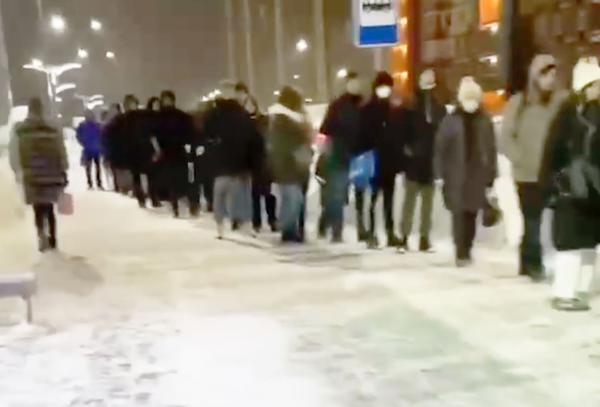 На кадрах, выложенных в сеть, запечатлено, что очередь достигает нескольких десятков метров при том, что на улице сильный мороз. Горожане стоят на утренний автобус, чтобы доехать до работы и учебы. Видео было сделано на территории жилого комплекса «Пригород Лесное». Местная администрация заявляет, что в ложившейся ситуации виноват сильный снегопад, однако жители района отмечают, что подобное здесь происходит круглый год.