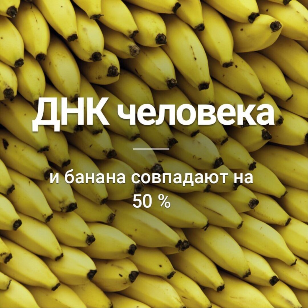 ДНК банана и человека совпадает больше чем на 50 процентов, в это невозможно поверить, но это правда, после этой информации поедание банана уже никогда не будет прежним 😂