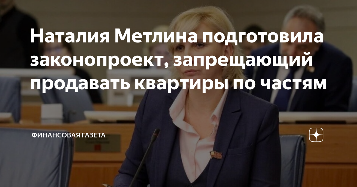 «Выкуп долей стал формой социального терроризма, — пояснила Метлина. — Он порождает протестные настроения, недоверие к власти, судебной системе и президенту РФ и, я убеждена, стал главной угрозой для российских семей. Если мы не урегулируем вопрос отношений собственников долей, мы заложим бомбу под каждую российскую семью! Ибо почти все мы уже сегодня являемся участниками долевой собственности».