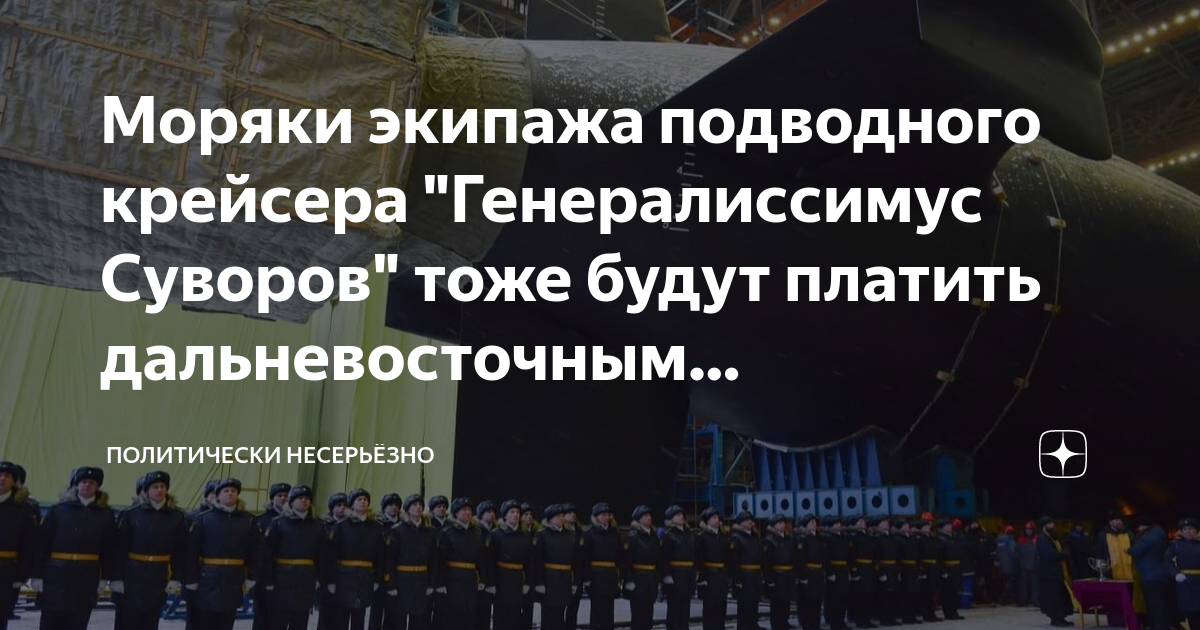 Источник: https://zen.yandex.ru/media/id/5af2cba1a815f14484527b8b/moriaki-ekipaja-podvodnogo-kreisera-generalissimus-suvorov-toje-budut-platit-dalnevostochnym-ugolovnikam-na-grev-61c7a5796a98024676a6fbe7