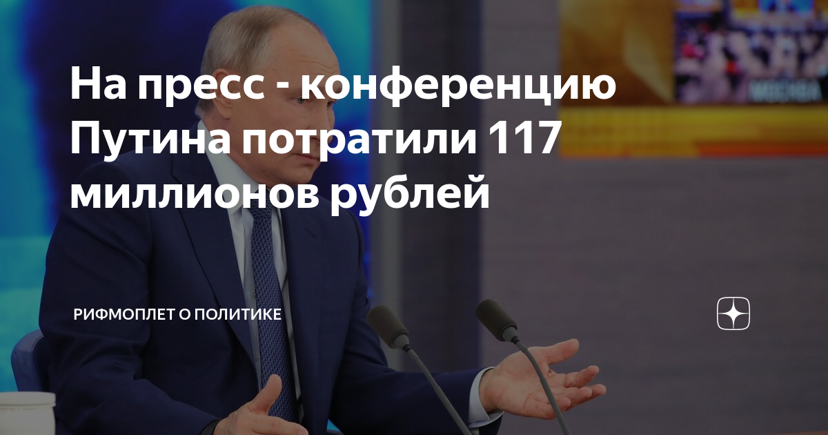 Источник: https://zen.yandex.ru/media/ss4444/na-press-konferenciiu-putina-potratili-117-millionov-rublei-61cabfb47a5df40de1d58875