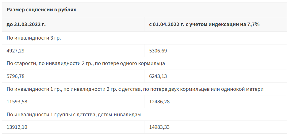 Если все-таки индексация с 1 апреля 2022 года составит 7,7%, размеры пенсий от такого повышения изменятся следующим образом: