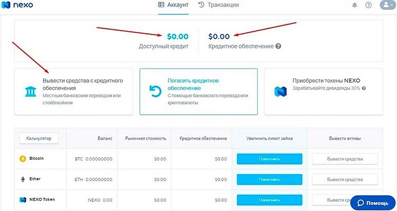Аккаунт пользователя в Nexo