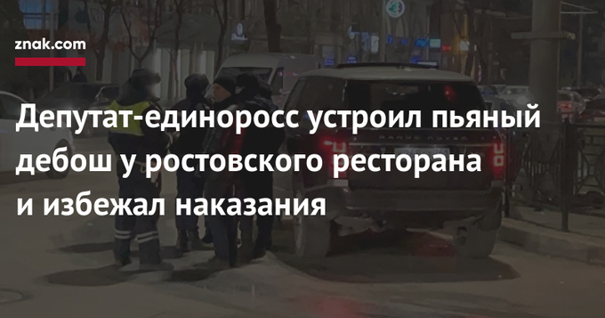 Выяснилось, что скандалившим мужчиной оказался депутат городской думы города Шахты от партии «Единая Россия» 46-летний Вадим Литвинов. В машине депутата полицейские нашли пистолет и ружье "Сайга". Подробнее:Подробнее ➤ Ставший антигероем скандала с потасовкой в ресторане депутат из Ростовской области Вадим Литвинов посчитал нужным разъяснить то, как он сам смотрит на ситуацию и возникшую шумиху. Литвинов подтвердил только то, что подрался с охранником ресторана. Однако, по его словам, сделал это после не очень вежливых высказываний охранника о партии «Единая Россия».