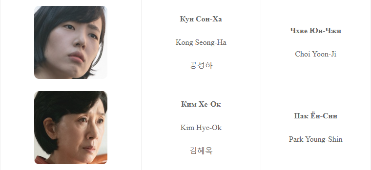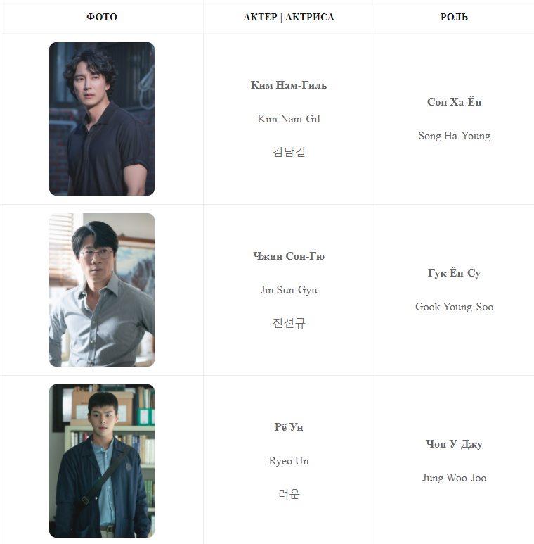 Актеры Ким Нам-Гиль, Чжин Сон-Гю, Ким Со-Джин, Рё Ун, Ли Дэ-Ён, Ким Вон-Хэ, Чон Сун-Вон, Кун Сон-Ха, Ким Хе-Ок