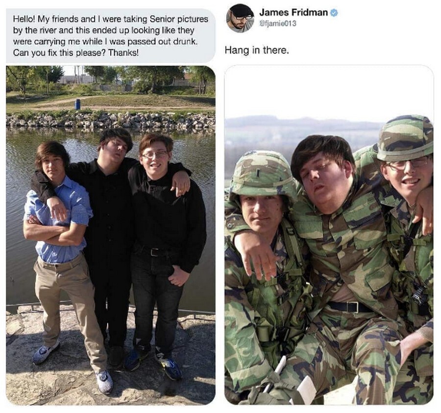 "На фото с выпускного кажется, как будто друзья несут меня пьяного. Исправишь это?"