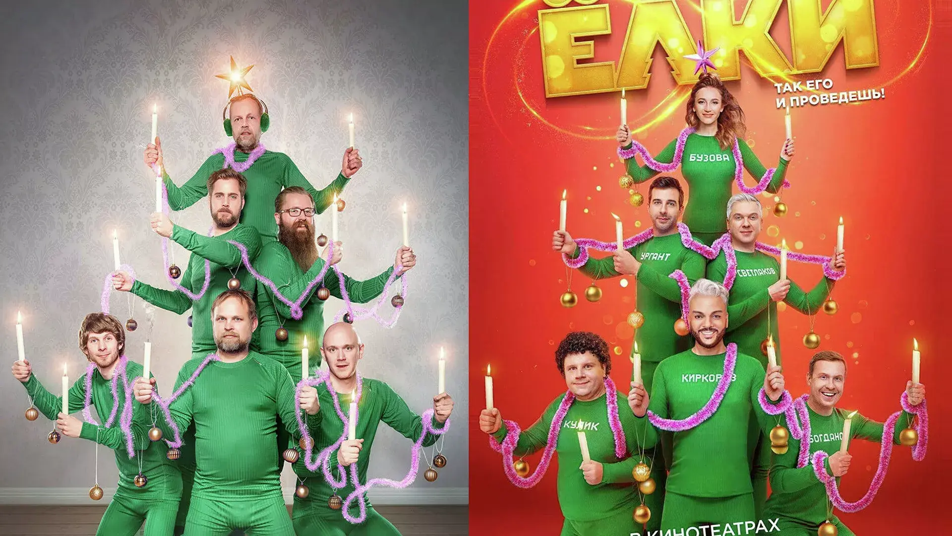 "На него похожа афиша рождественского концерта в Люцерне, праздничный постер канадского спортивного телеканала Sportsnet и еще десяток новогодних открыток из разных стран мира, — отметили в Bazelevs и приложили к тексту снимки. — Идея построить людей на фото в форме новогодней елки, которую придумал Дирдал, ушла в народ и превратилась во флешмоб. Мы также вдохновились этой концепцией — и собрали елку из героев новых "Елок".