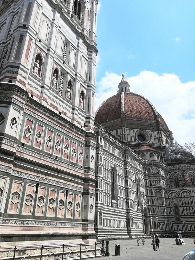 Начали строительство с фасада, но после смерти Арнольфо ди Камбьо в начале XIV века работы были надолго приостановлены. Потом назначили главным архитектором Джотто ди Бондоне, художника!