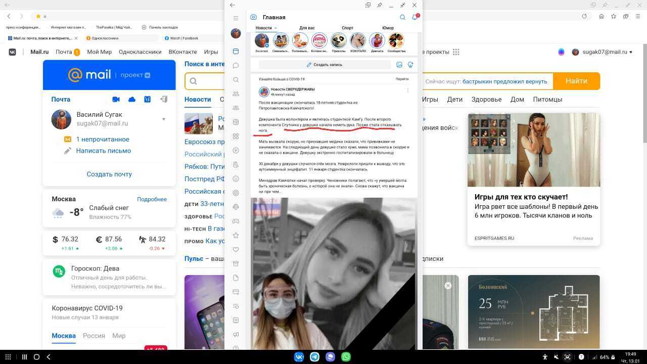 Татьяна, посмотрите по ссылке yandex.ru Или это не доказательство, что на Камчатке умерла 18 летняя девочка после прививки? Или это тоже фантазии?