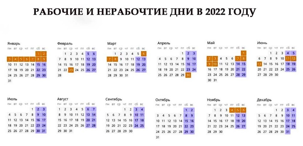 Календарь праздничных дней на 2022 год