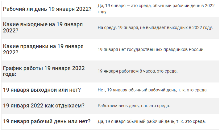 Как работаем 19 января 2022 года в России?