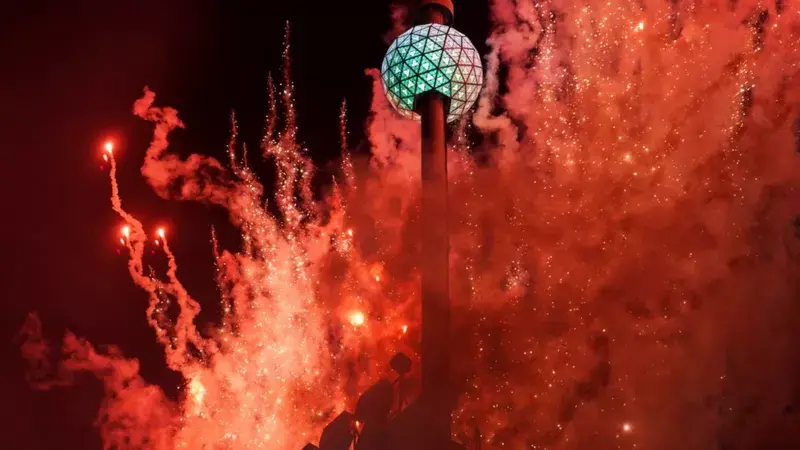 В Нью-Йорке гигантский светящийся шар, как обычно, спустился по мачте на Таймс-сквер, однако наступление нового года здесь отмечали только 15 тыс. человек, каждый из которых должен был предъявить свидетельство о вакцинации. В прошлом на площадь приходила аудитория из 58 тыс. зрителей.