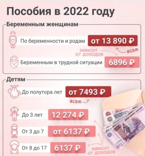 Этот же минимум получают ухаживающие за младенцем безработные: в 2022 году это 7 493 рубля. Правда, за январь декретницы и декретники получат прошлогодние 7 083 рубля — выплату проиндексируют в феврале 2022 года.