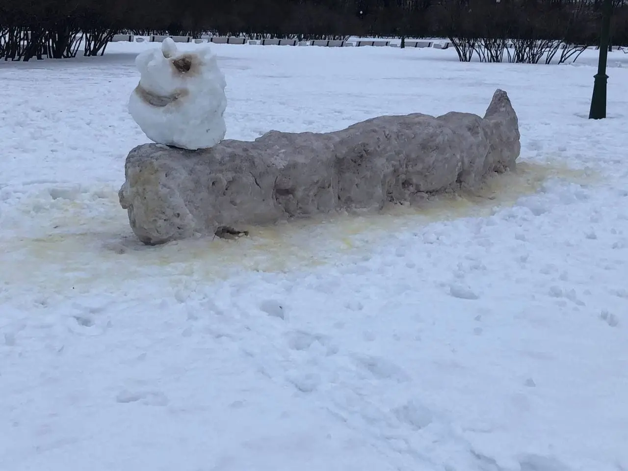 Гигантские фекалии из снега в центре Петербурга слепил московский художник Иван Волков. На эту работу его вдохновили творения коллег из Северной столицы. В прошлом году Волков уже сооружал аналогичную скульптуру в Подмосковье.