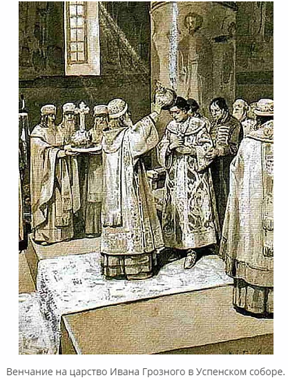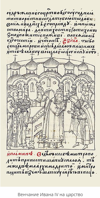 Венчание на царство Ивана Грозного определяло ему высокий титул, а Русь приравнивалась к Римской империи. Москва становилась царствующим городом, а русская земля – Русским царством. Молодой московский князь был помазан миррой, что по религиозному понятию означало "избранный Богом". Церковь во всем этом имела определенный интерес: добиться приоритета в управлении государством и дальнейшего укрепления православия.