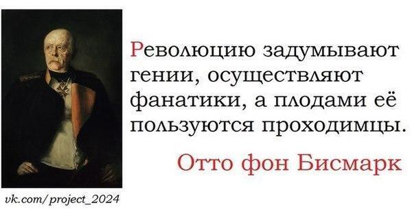 Я вынужден согласиться с Бисмарком, а плата за революцию всегда неравнозначна, посудите сами, одни платят жизнями, другие деньгами они то и пользуются плодами революции...)))?!