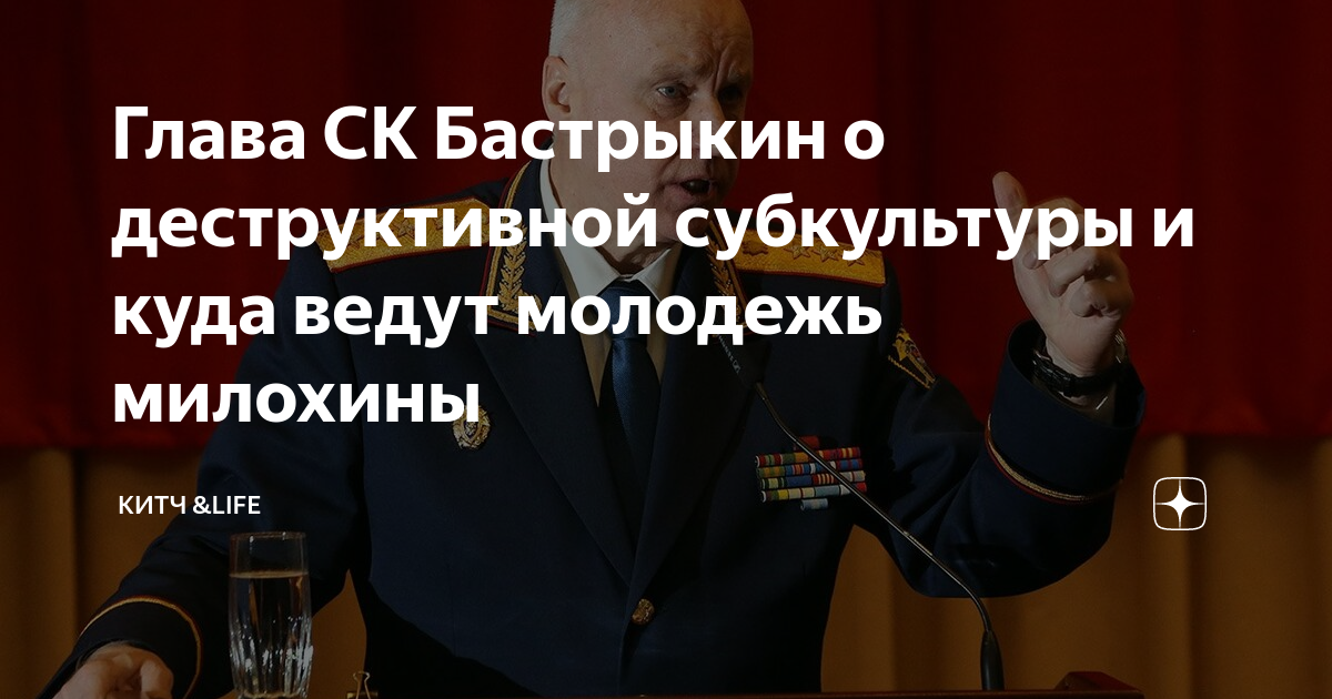 Источник: https://zen.yandex.ru/media/kitch/glava-sk-bastrykin-o-destruktivnoi-subkultury-i-kuda-vedut-molodej-milohiny-61e2ddbd9da8143b9f71a2b4