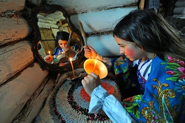 Когда родители уходили на праздничную вечернюю литургию, молодые девушки спешили погадать на жениха, на судьбу. Существуют десятки обрядов на суженого, вот лишь некоторые из них: