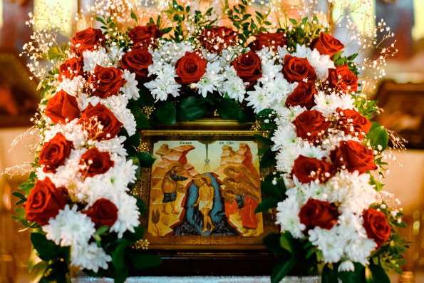 После выхода Спасителя из Иордана отверзлись небеса и на Него сошёл Святой Дух в виде голубя. Затем с небес послышался глас Бога Отца: «Это Сын Мой возлюбленный, в Котором Мое благоволение». Этот эпизод Евангельской истории отражает явление людям всей Божественной Троицы — Отца, Сына и Святого Духа. В связи с этим Крещение Господне называют также Богоявлением.