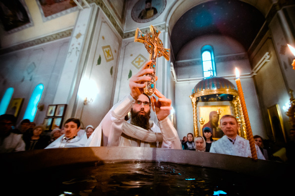 В праздник Крещения Господня после завершения Литургии в храмах совершается великое освящение воды. Чин великого освящения совершается также накануне в Крещенский сочельник. Важно отметить, что вода, освящаемая в храме, принципиальным образом отличается от любой другой воды, вопреки мнению, что на праздник все воды являются одинаково освященными.