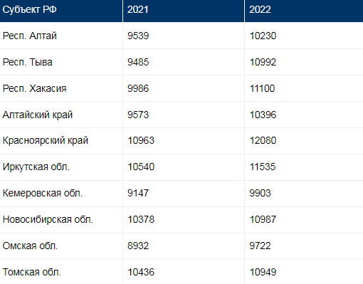 Размер минимальной пенсии в РФ с 01.01.2022 по регионах