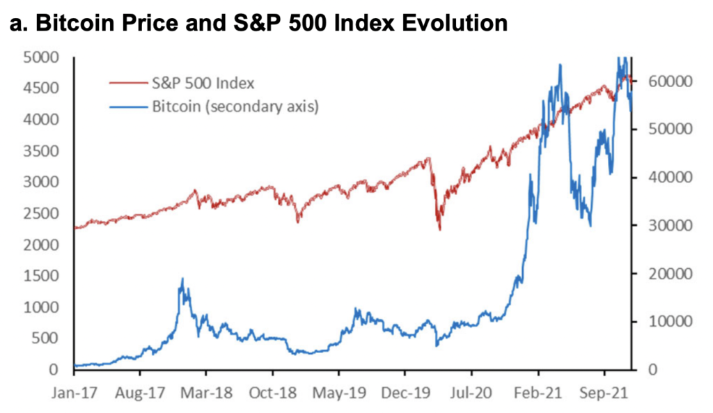 В отчете приводят образчик в паре биткоин и фондовый индекс S&P 500. В 2017–2019 годах меж ними была практически нулевая корреляция (0,01), но она выросла на 360% в этап с 2020 по 2021 год.