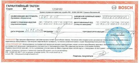 При возврате или обмене товара необходимо предъявить заполненный гарантийный талон.