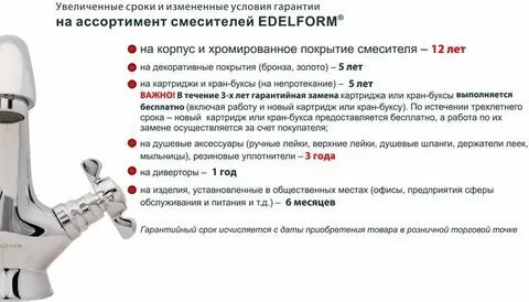 Открываем Гарантийный талон и внимательно читаем.: " Гарантия предоставляется на корпус смесителя, хромированное покрытие, керамические кран-буксы. Точка!