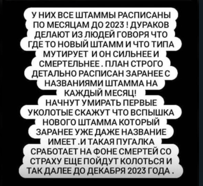 Я верю,что есть простуды (ОРВИ,ОРЗ,ГРИППЫ),а в эти ковидные штаммы никогда не верил и не поверю.Сильно простудился,может быть пневмония(воспаление лёгких),и если не лечить,то получишь туберкулёз,а там и до рака недалеко.Но не какая вакцина не вылечит.