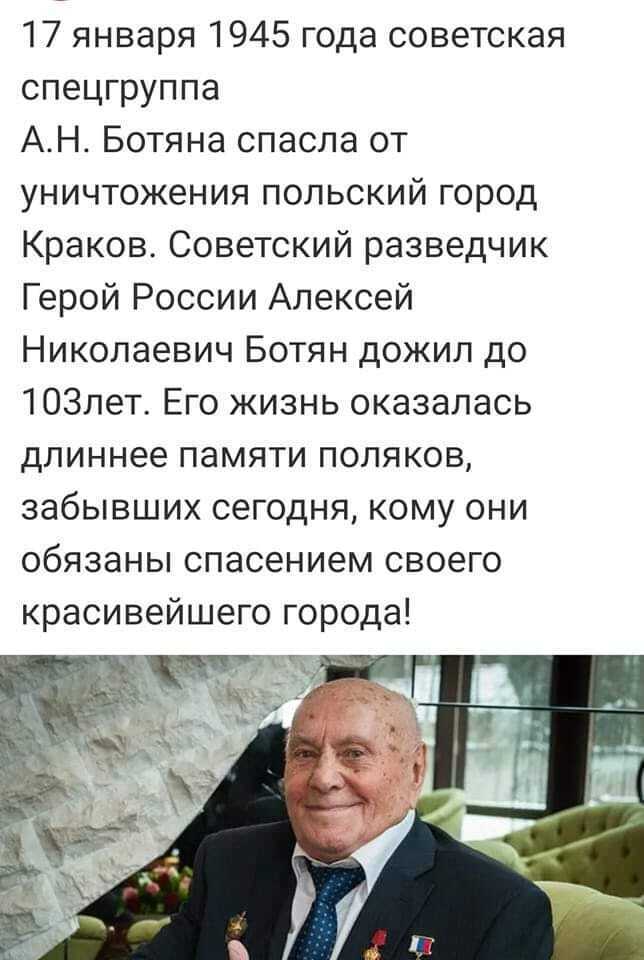 В этом году разведчик Алексей Ботян, спасший Краков от уничтожения во время войны, отметил бы 105 летие