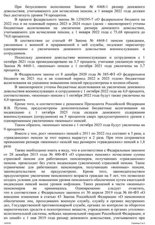 Итак, на свой вопрос о военных пенсиях был получен следующий ответ из Администрации Президента России: