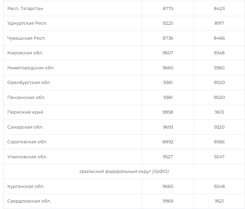 Чтобы получить представление о том, сколько будет добавлено к минимальной пенсии по каждому предмету с нового года, в таблице ниже приведены сравнительные данные за 2021 и 2022 годы. Для удобства регионы были разделены на округа.