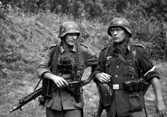 А так как очень быстро началась холодная война между бывшими союзниками, то пришлось комплектовать из немцев и вооруженные силы двух новых Германий. На западе в 1955 году был создан Бундесвер. На востоке была создана Национальная народная армия в 1956 году. И здесь оставшиеся каски вермахта пришлись как нельзя кстати.