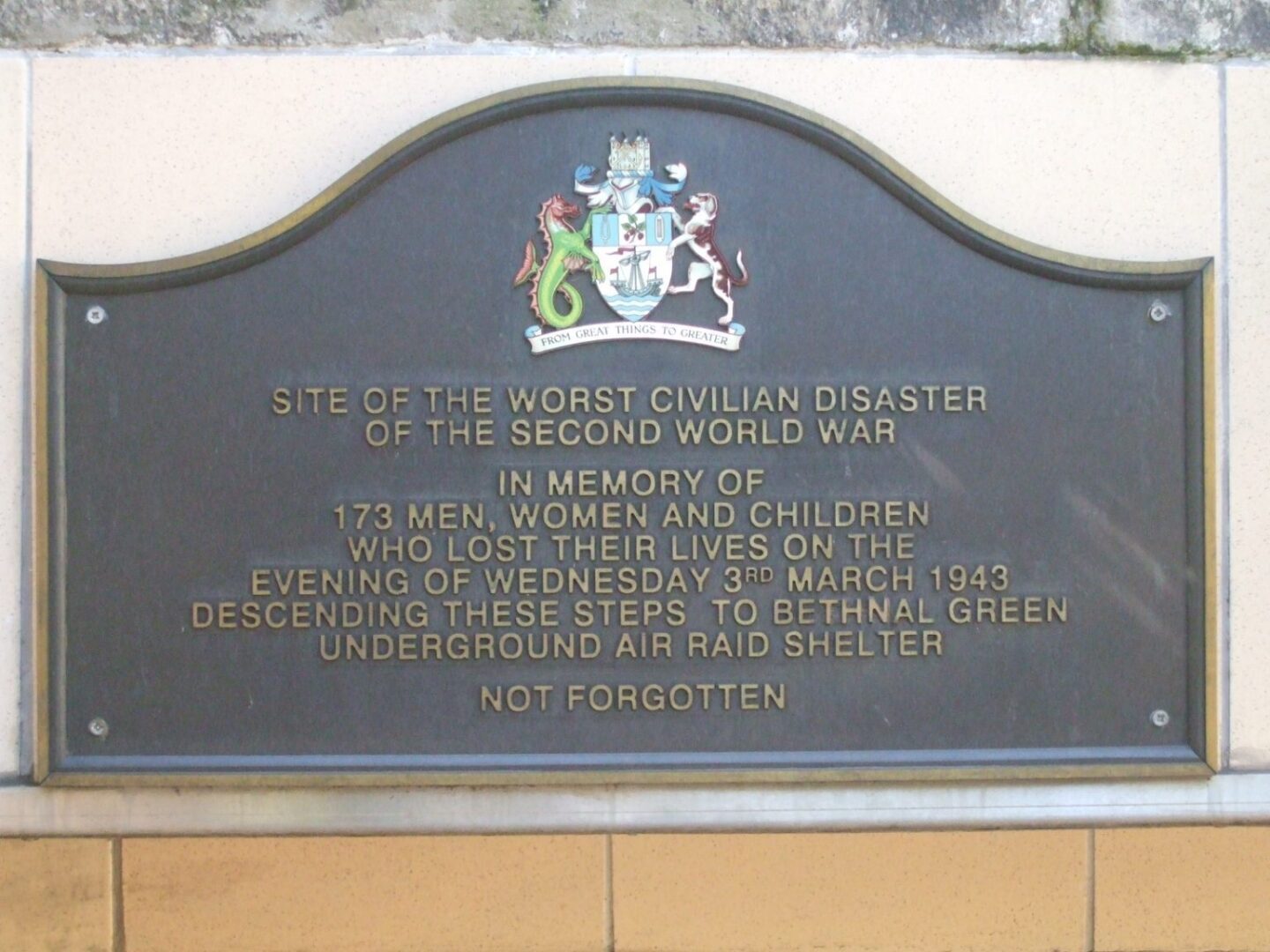 В военное время станцию использовали как бомбоубежище во время налетов авиации, и когда прозвучала сирена, предупреждающая о грядущем налете фашистов, люди направились в Бентал-Грин, которая на тот момент еще окончательно не была построена. Вход на станцию был узким, и образовалась толпа. Скользкие из-за дождя ступени и выключенное ради маскировки освещение сделали свое роковое дело: когда на улице послышались залпы орудий, давление толпы усилилось. Женщина с ребенком на руках поскользнулась на ступеньках и упала, а после по «эффекту домино» начали падать и остальные. В итоге на этой лестнице из 19 ступеней случилось страшное месиво из людских тел, в котором погибли 173 человека, среди них было 62 ребенка. На станции Бентал-Грин установлена мемориальная доска в память о тех событиях и возведен мемориал «Лестница в небо».